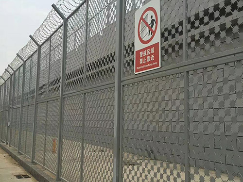 機場圍界又稱作“Y型安全防御護網”,是由V型支架立柱,加強型焊接片網,安全防盜連接件和熱鍍鋅刀片刺籠組成,安全性高、防攀爬能力好