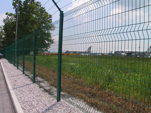 機場圍界又稱作“Y型安全防御護網”,是由V型支架立柱,加強型焊接片網,安全防盜連接件和熱鍍鋅刀片刺籠組成,安全性高、防攀爬能力好